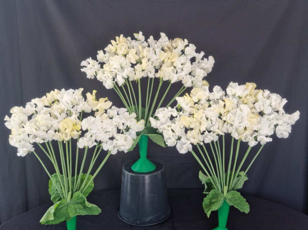 In addition to dahlias and sweet peas, I’ve exhibited many other types of flowers using the rings – now over 550 vases of flowers between 2022 and 2024.
