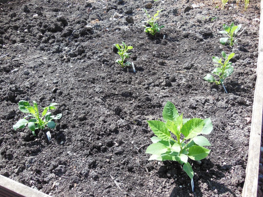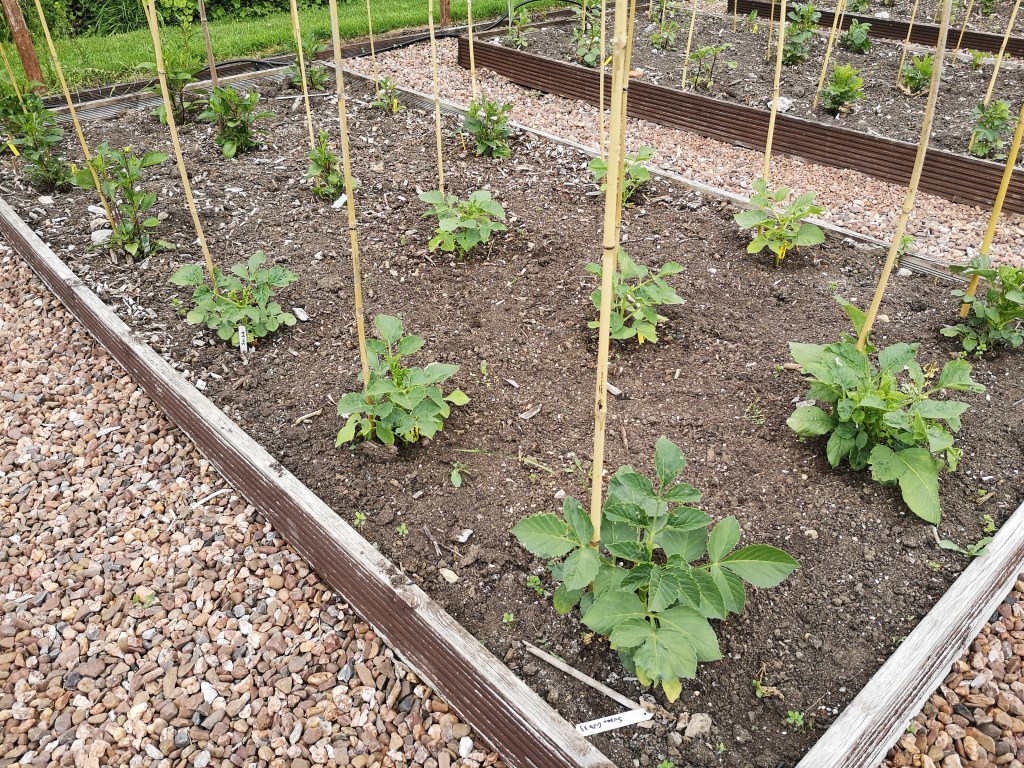 Early days in the dahlia beds – all plants are now in the ground and many are showing signs of growth.
