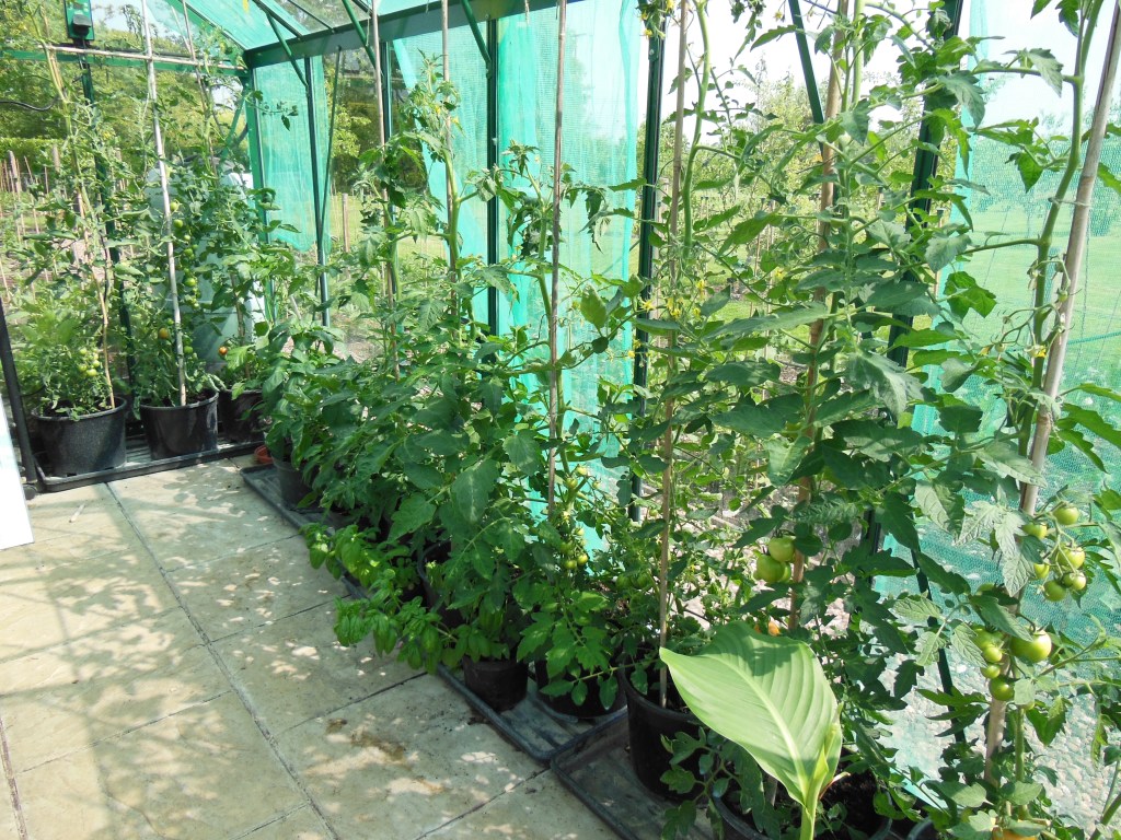 Trying to get the timing right by ‘second stopping’ and occasionally ‘knocking back’. I’m going to let the first batch of plans start to flower now….only 3 weeks until the first shows on 6/7 August and then a short gap until the dahlia shows start.