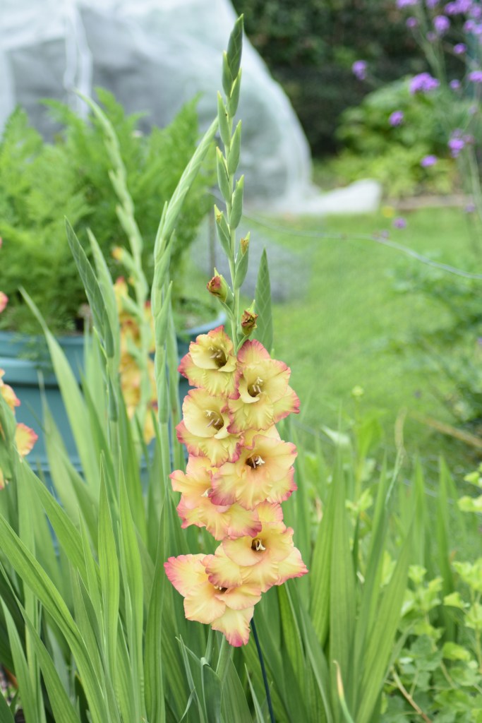 The first of the gladioli are now coming out – Indian Summer.