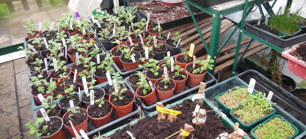 There is plenty to do in the greenhouse. I have been pricking out parsley, onions and leeks. The first batch of chrysanthemum cuttings is now outside the propagator – just being allowed to ‘stabilise’ for a couple of days before potting up.