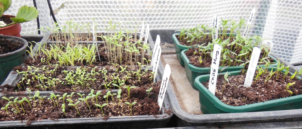Looks like we will have plenty to do next week, the first batches of seedlings have been taken out of the heated propagators. Here we have peppers, tomatoes, chillies, parsley, helichrysum, statice & marigolds.