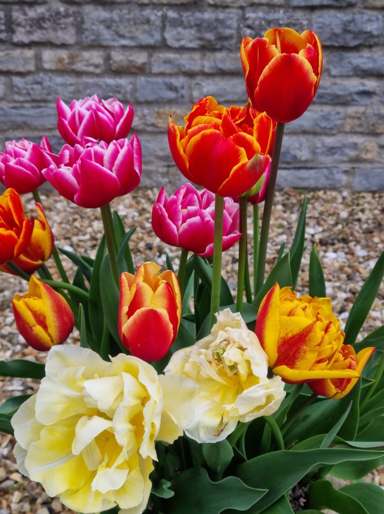 Most of my pots of daffodils are now over, but the tulips in pots by the patio look great.