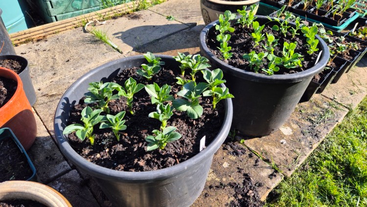 Most of our veg are going to be in containers this year – for a variety of reasons! First peas and broad beans in!