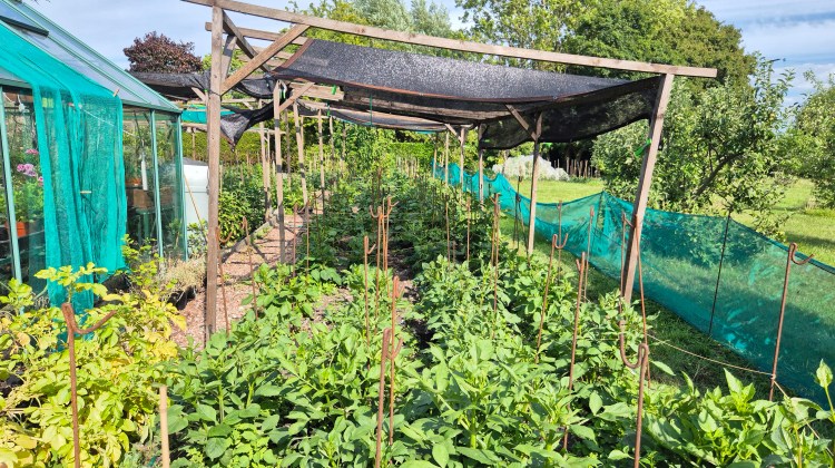 The greenhouse is now producing a supply of tomatoes (Tigerella, Alicante & Sweet Aperitif) and cucumbers (Socrates) and the melons, peppers and chillies are growing strongly.