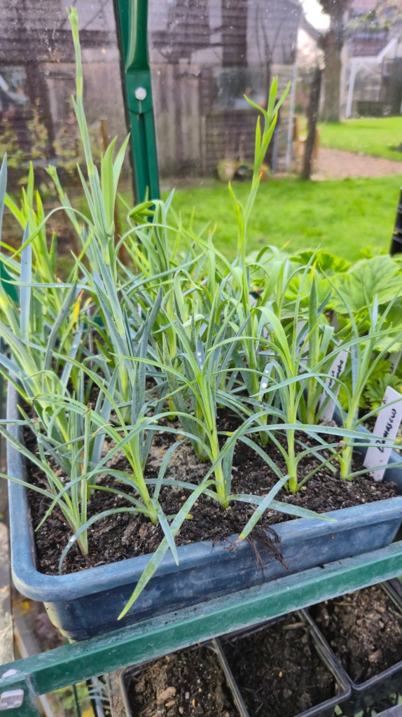 Autumn cuttings out of the propagator to make room for the sweet pea sowing! Carnations, pinks and pelargoniums.