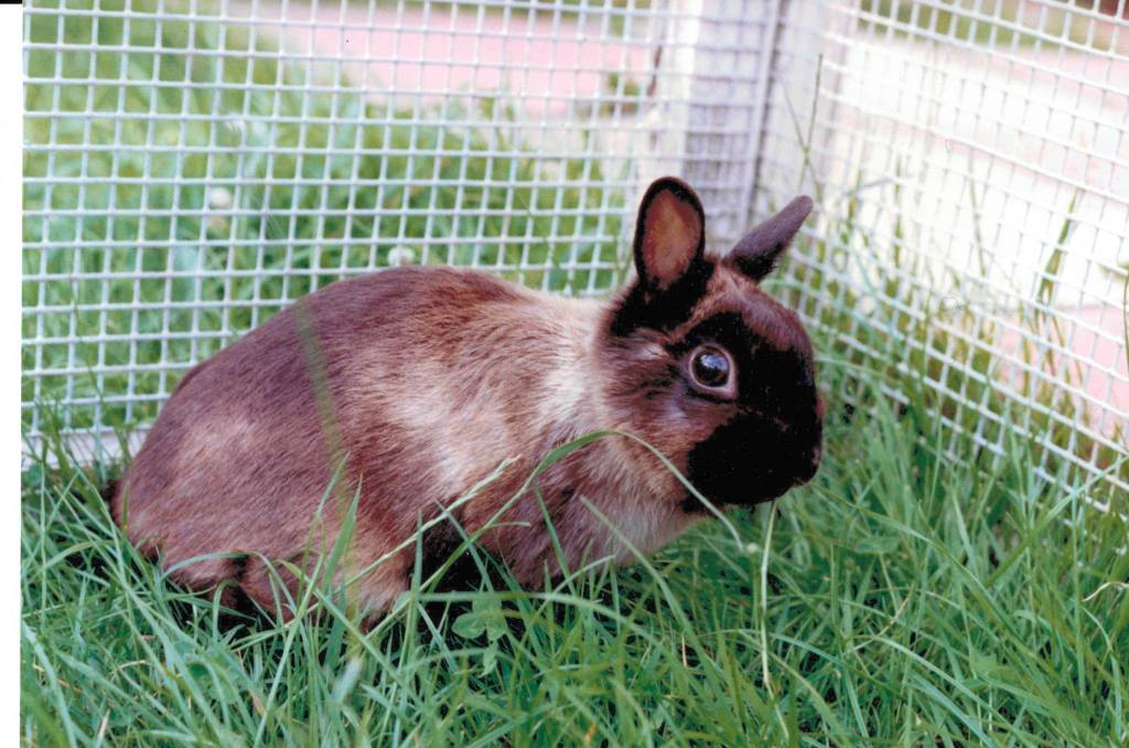 Smoqui was a Netherland Dwarf who was with me for only a short while from 1988 to 1990. She loved a cuddle and was never happier than when sitting on someone’s shoulder. And found rose petals particularly tasty.