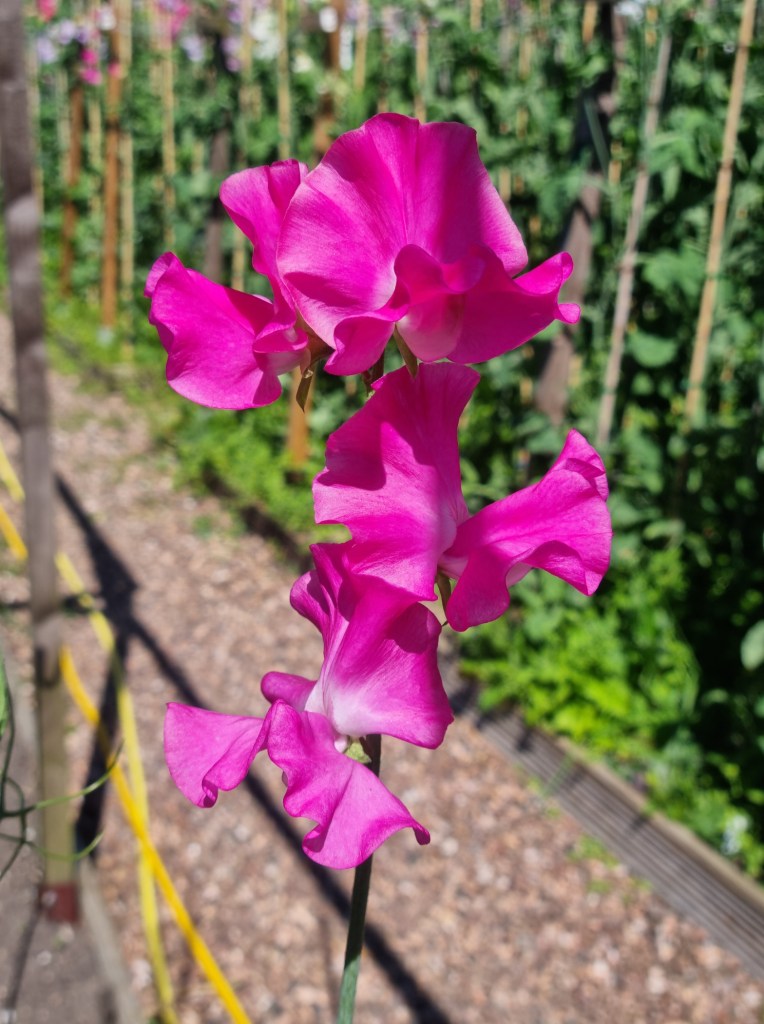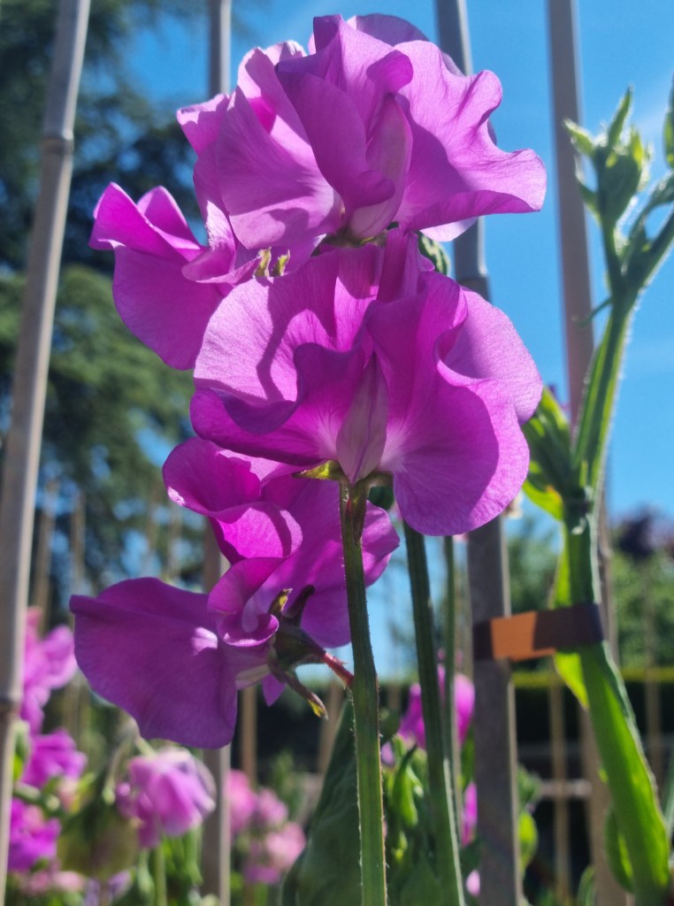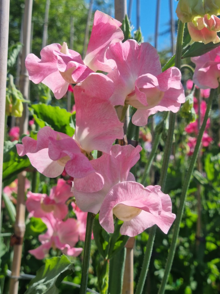 These sweet peas were all grown in our garden for the 2024 season. These photos are included to give a general idea of colour and form. The blooms are shown in various stages and conditions, so not all the blooms are destined for the show bench!