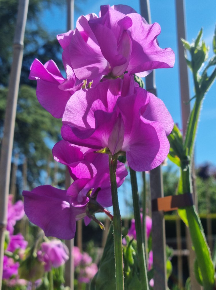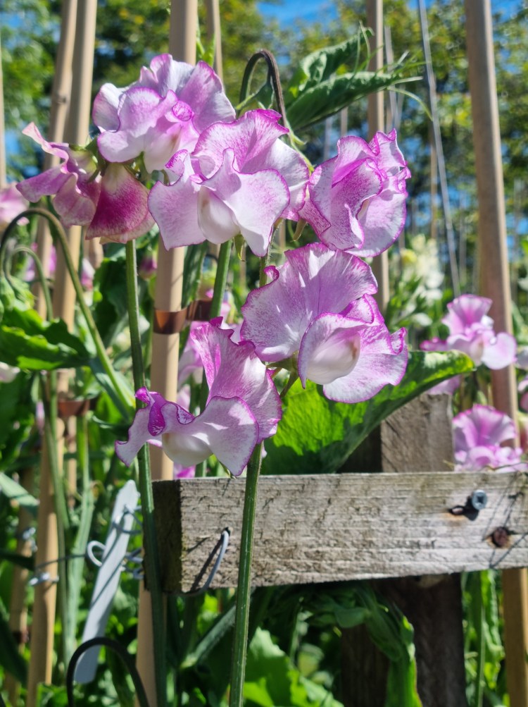 These sweet peas were all grown in our garden for the 2024 season. These photos are included to give a general idea of colour and form. The blooms are shown in various conditions, so not all are destined for the show bench!